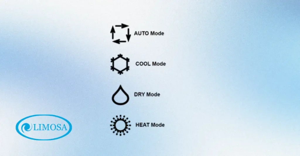 - Nhấn nút “MODE” liên tục để chuyển qua các chế độ: Auto (tự động), Cool (làm mát), Dry (khử ẩm), Fan (chỉ quạt), Heat (sưởi ấm nếu có).